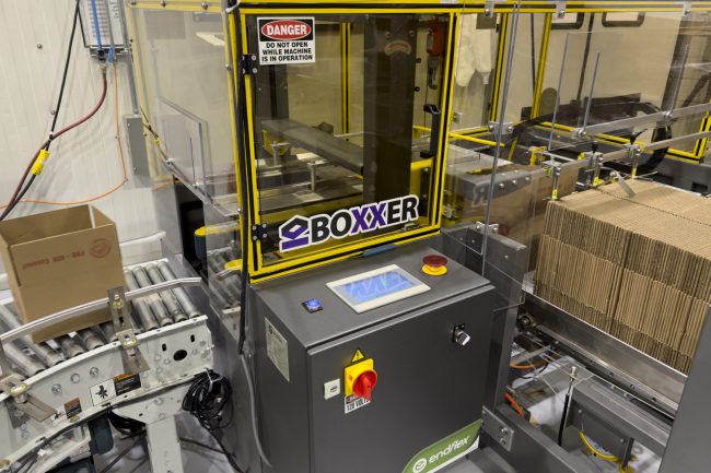 • The automatic BOXXER case erector developed by Paxiom’s Florida-based EndFlex LLC manufacturing sister company.