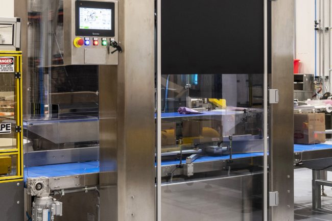 Not surprisingly, PRANA’s earnest and genuine commitment to environmental sustainability applies to everything that unfolds on the production floor of its new production facility in Saint-Laurent, where the company moved in 2019 to accommodate its growth plans. Aiming to become a food waste-free facility by the end of the year, the modern high-ceiling facility houses three packing lines and 80 full-time employees working on a two-shift, five-day weekly production schedule to churn out ever-growing quantities of the company’s branded and private-label products. With one line dedicated to pillow bags and second one to stand-up pouches, the plant employs two fully-automatic multihead weighscales and two high-performance vertical pouch bagging machines running at average speeds of up to 120 pouches par minute. Until recently, the relatively high level of automation at the front end of the process presented a real challenge for the downstream personnel at the end of the stand-up pouch line, who were tasked with the grueling and repetitive jobs of removing the incoming pouches off the conveyor belt and placing them inside the corrugated shipping carriers used to ship the product to customers. Employing up three people to keep up with the product flow, the manual process was in dire need of a switch to more automated mode of operation, according to Farber, to enable better line efficiencies and a more productive use of the company’s personnel to perform more value-added tasks elsewhere in the plant. “With the cost of labor becoming more expensive, and finding people to do these kinds of jobs becoming harder to find, end-of-line packaging has been an area of concern for some time,” Farber acknowledges. “The whole COVID pandemic experience only accelerated our need to invest in additional automation.” Buoyed by substantial government assistance from the Quebec Ministry of Agriculture, Fisheries and Food (MAPAQ) as part of the ministry’s Food Transformation Program: Robotization and Quality Systems, Farber finally had the required funding in place to address the end-of-line shortcomings. Before long, Farber approached renowned local packaging machine-builder Paxiom Group to find an effective way to automate the end-of-line packaging process for the stand-up pouch line. “We looked around and it seemed that no one had the machine we needed to take care of our specific requirements on that line,” Farber recalls. “But with Paxiom being a local company, we felt comfortable to work with a local partner to develop a solution that would meet our needs.”